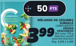 On this page you can compare the current prices of Frozen vegetables at different retailers such as Fortinos. Whether you are looking for NO NAME FROZEN VEGETABLES, COMPLIMENTS FROZEN VEGETABLES & COMPLIMENTS Frozen Vegetables, you will immediately see where you can buy the product for the lowest price. The cheapest deal is automatically listed at the top, including retailer name, price, and validity period.