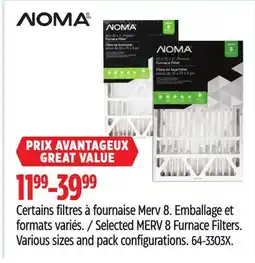 Canadian Tire NOMA Selected MERV 8 Furnace Filters offerNOMA Selected MERV 8 Furnace FiltersCanadian Tire$29.9904 December 202511 December 2025
