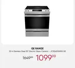 1Meubles RD GE 30 in Range Stainless 30 Electric Glass-Ceramic - JCSS630SMSS GE offerGE 30 in Range Stainless 30 Electric Glass-Ceramic - JCSS630SMSS GEMeubles RD$1,641.78$1,099.99$541.79 Discount02 February 202608 February 2026 View offer