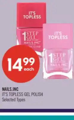 Shoppers Drug Mart NAILS.INC IT'S TOPLESS GEL POLISH offerNAILS.INC IT'S TOPLESS GEL POLISHShoppers Drug Mart$14.9907 February 202612 February 2026