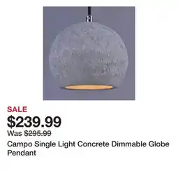 Wayfair Campo Single Light Concrete Dimmable Globe Pendant offerCampo Single Light Concrete Dimmable Globe PendantWayfair$239.99-19%06 January 202612 January 2026