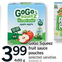 Real Canadian Superstore GOGO SQUEEZ FRUIT SAUCE POUCHES offerGOGO SQUEEZ FRUIT SAUCE POUCHES 12X90 GReal Canadian Superstore$11.53$8.99$2.54 Discount19 February 202625 February 2026