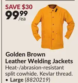 | Golden Brown Leather Welding Jackets | Princess Auto | $99.99 | 19 November 2024 | 01 December 2024 |