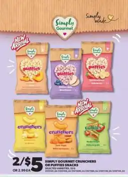 SIMPLY GOURMET CRUNCHERS OR PUFFIES SNACKS