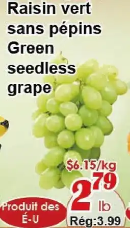 1Marche C&T Green seedless grape offerGreen seedless grapeMarche C&T$3.99$2.79$1.20 Discount15 January 202621 January 2026 View offer