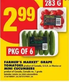 5No Frills FARMER’S MARKET GRAPE TOMATOES or MINI CUCUMBERS offerFARMER’S MARKET GRAPE TOMATOES or MINI CUCUMBERSNo Frills$2.9905 March 202611 March 2026 View offer