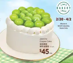 1T&T Supermarket Jasmine Grapes Cake offerJasmine Grapes CakeT&T Supermarket$45.0020 February 202626 February 2026 View offer