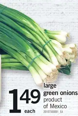 On this page you can compare the current prices of Green onions at different retailers such as Loblaws. Whether you are looking for Large green onions, Green onions & GREEN ONIONS, BUNCH, you will immediately see where you can buy the product for the lowest price. The cheapest deal is automatically listed at the top, including retailer name, price, and validity period.