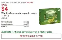 1Costco Wholly Guacamole organic minis offerWholly Guacamole organic minisCostco$15.99$11.99Save $419 January 202601 February 2026 View offer