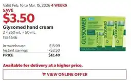 2Costco Glysomed hand cream offerGlysomed hand creamCostco$15.99$12.49$3.50 Discount16 February 202601 March 2026 View offer