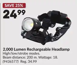 Princess Auto 2,000 Lumen Rechargeable Headlamp offer