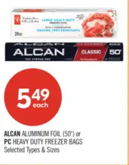 | ALCAN ALUMINUM FOIL (50') or PC HEAVY-DUTY FREEZER BAGS (10's - 38's) | Shoppers Drug Mart | $4.99 | 01 February 2025 | 06 February 2025 | |||