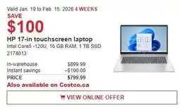 | 1 | HP 17-in touchscreen laptop | Costco | $899.99 | $799.99 | Save $100 | 19 January 2026 | 01 February 2026 | View offer | |