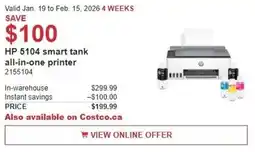 | 2 | HP 5104 smart tank all-in-one printer | Costco | $299.99 | $199.99 | Save $100 | 19 January 2026 | 01 February 2026 | View offer | |