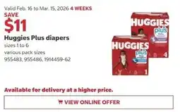 | Huggies Plus diapers | Costco | Save $11 | 16 February 2026 | 01 March 2026 | |||