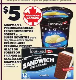 CHAPMAN'S PREMIUM ICE CREAM, FROZEN DESSERT OR SORBET, 2 L OR SUPER NOVELTIES, 6-20'S
