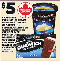 Independent Grocer CHAPMAN'S PREMIUM ICE CREAM OR FROZEN DESSERT OR SORBET, 2 L OR SUPER NOVELTIES, 6-20'S offer