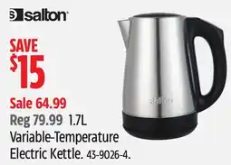 | Salton 1.7L Variable-Temperature Electric Kettle | Canadian Tire | $67.99 | 04 December 2025 | 10 December 2025 | |||