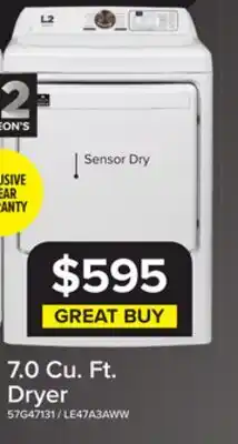 | 1 | L2 White Electric Dryer (7.0 Cu.ft) - LE47A3AWW | Leon's | $595.00 | 25 December 2025 | 07 January 2026 | View offer | |||