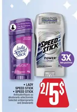 This week there are several deals for Lady speed stick available, such as at Jean Coutu and other major chains. You will find offers like buy 1 get 1 free and Save up to 25$ or sharp discount prices on LADY SPEED STICK, SPEED STICK Selected antiperspirants and deodorants, LADY SPEED STICK Selected antiperspirants & IRISH SPRING, LADY SPEED STICK, SPEED STICK Produits sélectionnés. With the filters you can easily select by packaging type, quantity, or your preferred retailer.