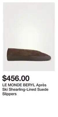 Holt Renfrew LE MONDE BERYL Après Ski Shearling-Lined Suede Slippers offerLE MONDE BERYL Après Ski Shearling-Lined Suede SlippersHolt Renfrew$456.0005 March 202611 March 2026