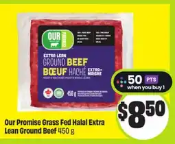 | Our Promise Grass Fed Halal Lean Ground Beef 900 g | FreshCo | $8.77 | 01 May 2025 | 07 May 2025 | |||