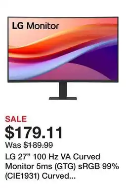 Newegg LG 27 100 Hz VA Curved Monitor 5ms (GTG) sRGB 99% (CIE1931) Curved 27U421A-B offerLG 27 100 Hz VA Curved Monitor 5ms (GTG) sRGB 99% (CIE1931) Curved 27U421A-BNewegg$190.54$179.11$11.43 Discount26 January 202601 February 2026