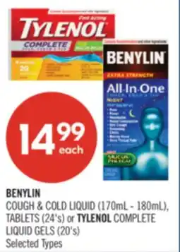 BENYLIN COUGH & COLD LIQUID (170mL - 180mL), TABLETS (24's) or TYLENOL COMPLETE LIQUID GELS (20's)