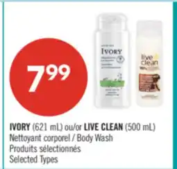 IVORY (621 mL) or LIVE CLEAN (500 mL) Body Wash