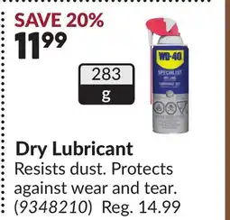 1Princess Auto Dry Lubricant offerDry LubricantPrincess Auto$11.9930 December 202511 January 2026 View offer