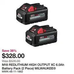 | M18 REDLITHIUM HIGH OUTPUT XC 6.0Ah Battery Pack (2 Piece) | Bumper to Bumper | $529.03 | $328.00 | $201.03 Discount | 02 February 2026 | 28 February 2026 |
