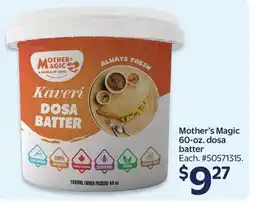 | 1 | Mother's Magic dosa batter 60 oz. | Walmart | $9.27 | 25 December 2025 | 01 January 2026 | View offer | |||