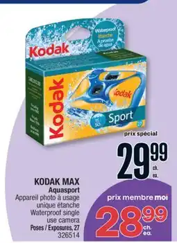 | KODAK MAX Aquasport Waterproof single use camera Poses | Jean Coutu | $29.99 | 22 May 2025 | 28 May 2025 | |||