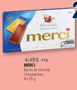 1Familiprix MERCI, Chocolate bars offerMERCI, Chocolate bars 4 x 25 gFamiliprix$4.46$2.99-33%22 January 202628 January 2026 View offer