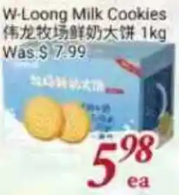 Tone Tai Supermarket W-Loong Milk Cookies offerW-Loong Milk CookiesTone Tai Supermarket$7.97$5.98$1.99 Discount06 March 202612 March 2026