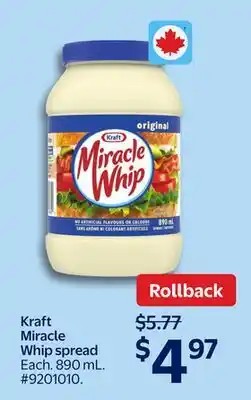Walmart Kraft Miracle Whip 890 ml offerKraft Miracle Whip 890 mlWalmart$4.9723 February 202301 March 2023