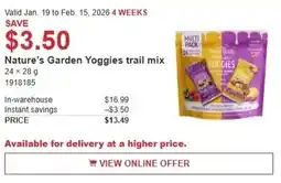 2Costco Nature's Garden Yoggies trail mix offerNature's Garden Yoggies trail mixCostco$16.99$13.49Save $3.5019 January 202601 February 2026 View offer