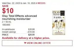 On this page you can compare the current prices of Moisturizer at different retailers such as Costco. Whether you are looking for Olay Total Effects advanced nourishing moisturizer, Olay Total Effects advanced nourishing moisturizer & POND'S HYALURONIC ACID HYDRATING GEL MOISTURIZER (96.4g) or CREAM (200g), you will immediately see where you can buy the product for the lowest price. The cheapest deal is automatically listed at the top, including retailer name, price, and validity period.