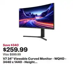 | V7 34 Viewable Curved Monitor - WQHD - 3440 x 1440 - Height Adjustable | Best Buy | $604.63 | $259.99 | $344.64 Discount | 17 February 2026 | 19 February 2026 | |