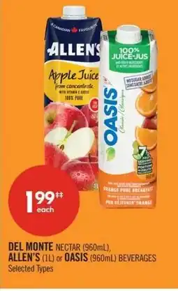 DEL MONTE NECTAR (960mL), ALLEN'S (1L) or OASIS (960mL) BEVERAGES
