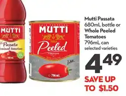 Longo's Mutti Passata 680mL bottle or Whole Peeled Tomatoes 796mL can offer