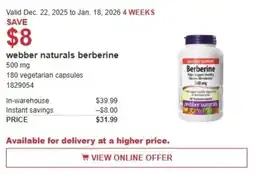 | 2 | Webber naturals berberine | Costco | $39.99 | $31.99 | Save $8 | 22 December 2025 | 18 January 2026 | View offer | |
