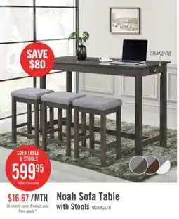 The Brick Noah 60 Modern Sofa Table with 3 Counter-Height Stools and USB Ports - Grey offerNoah 60 Modern Sofa Table with 3 Counter-Height Stools and USB Ports - GreyThe Brick$639.9530 September 202509 October 2025