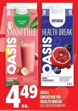 | OASIS PAUSE-SANTÉ or SMOOTHIE Juice Blend (1,6 L) 1.6 L | Pharmaprix | $4.69 | 17 January 2026 | 22 January 2026 | |||