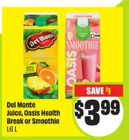 | Del Monte Juice, Oasis Health Break or Smoothie 1.6 L | FreshCo | $3.99 | -20% | 08 January 2026 | 14 January 2026 | ||