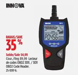 | Innova 3011 OBD2 Code Reade | Canadian Tire | $54.99 | 11 July 2025 | 17 July 2025 | |||