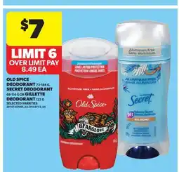 Real Canadian Superstore OLD SPICE DEODORANT, 73-144 G, SECRET DEODORANT, 68-116 G OR GILLETTE DEODORANT, 122 G offer