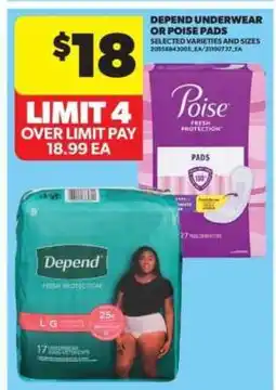 | DEPEND Underwear, Guards or Shields or POISE Pads | Rexall | $16.99 | 27 February 2026 | 01 March 2026 | |||