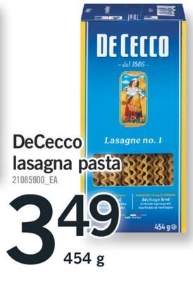![]() | Dececco lasagna pasta, 454 g | Fortinos | $3.49 | 28 September 2023 | 04 October 2023 | ||