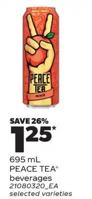1Real Canadian Superstore PEACE TEA BEVERAGES offerPEACE TEA BEVERAGES 695 ml.Real Canadian Superstore$1.69$1.25$0.44 Discount29 January 202604 February 2026 View offer